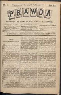 | Prawda : tygodnik polityczny, społeczny i literacki, 1891, R. 11, nr 45 | Nov 28, 2012 |